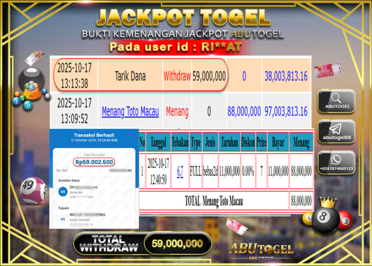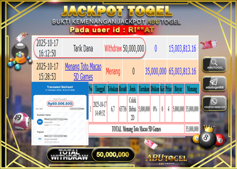 Bukti Jackpot Togel Online ABUTOGEL Jumat 17 Oktober 2025 - ABUTOGEL adalah bo togel onlinne terpercaya. Berikut ini kami berikan...