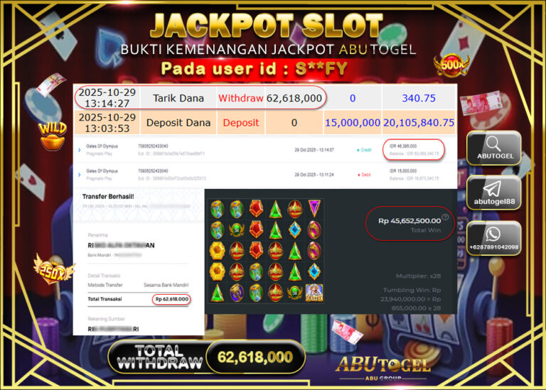 Bukti Jackpot ABUTOGEL Slot Online Selasa 28 Oktober 2025 - ABUTOGEL adalah situs slot gacor maxwin terpercaya. Berikut ini kami...
