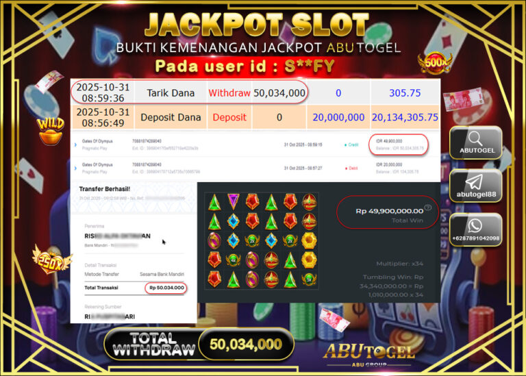 Bukti Jackpot ABUTOGEL Slot Online Jumat 31 Oktober 2025 - ABUTOGEL adalah situs slot gacor maxwin terpercaya. Berikut ini kami...