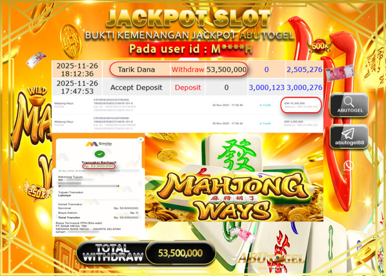 Bukti Jackpot Slot Online ABUTOGEL Rabu 26 November 2025 - ABUTOGEL adalah bo togel onlinne terpercaya. Berikut ini kami berikan...