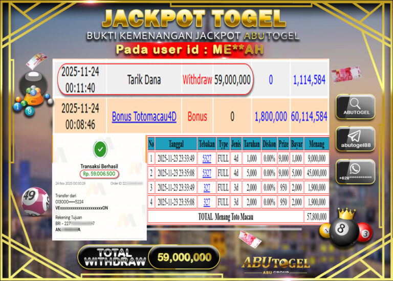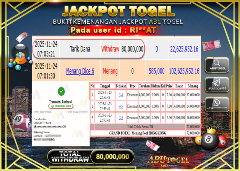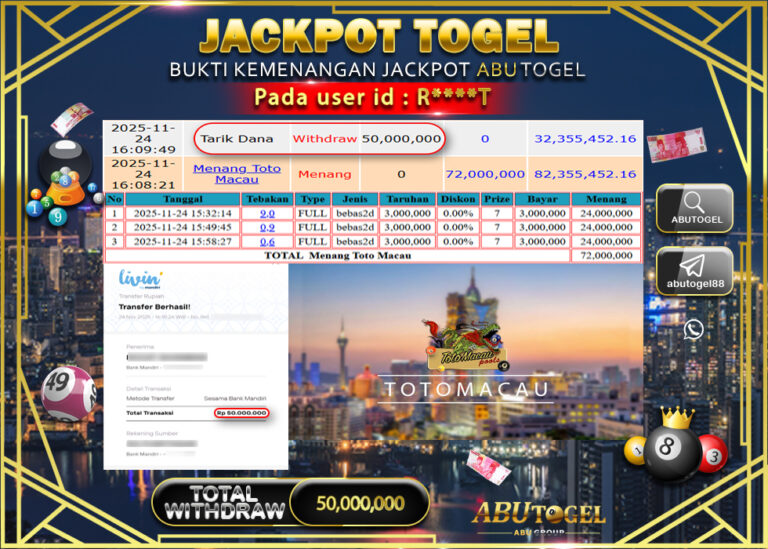 Bukti Jackpot Togel Online ABUTOGEL Senin 24 November 2025 - ABUTOGEL adalah bo togel onlinne terpercaya. Berikut ini kami berikan...