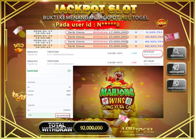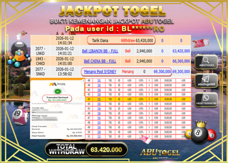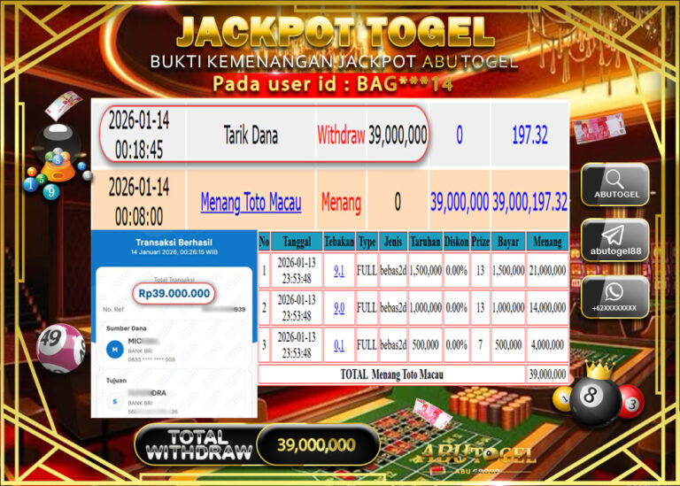 Bukti Jackpot Slot Online ABUTOGEL Selasa 13 January 2026 - ABUTOGEL adalah bo togel onlinne terpercaya. Berikut ini kami berikan...