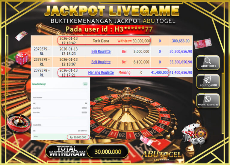 Bukti Jackpot ABUTOGEL Live Casino Rabu 14 January 2026 - ABUTOGEL adalah situs live casino terpercaya. Berikut ini kami berikan...
