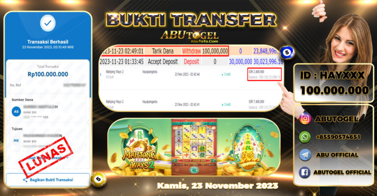 Bukti Jackpot ABUTOGEL Slot Online Kamis 23 November 2023 - ABUTOGEL adalah situs slot gacor maxwin terpercaya. Berikut ini kami...