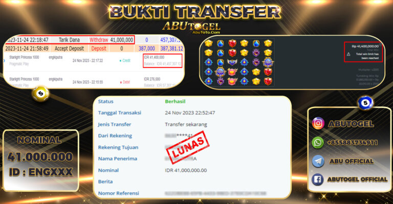 Bukti Jackpot ABUTOGEL Slot Online Jumat 24 November 2023 - ABUTOGEL adalah situs slot gacor maxwin terpercaya. Berikut ini kami...