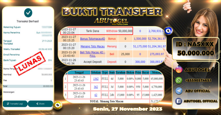 Bukti Jackpot Togel Online ABUTOGEL Senin 27 November 2023 - ABUTOGEL adalah bo togel onlinne terpercaya. Berikut ini kami berikan...