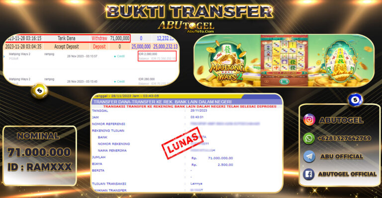 Bukti Jackpot ABUTOGEL Slot Online Sabtu 25 November 2023 - ABUTOGEL adalah situs slot gacor maxwin terpercaya. Berikut ini kami...