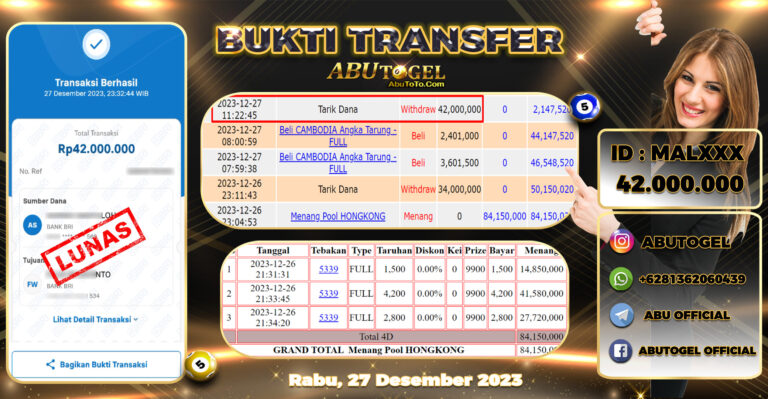 Bukti Jackpot ABUTOGEL Slot Online Rabu 27 Desember 2023 - ABUTOGEL adalah situs slot gacor maxwin terpercaya. Berikut ini kami...