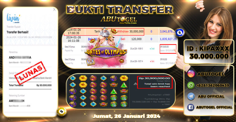 Bukti Jackpot ABUTOGEL Slot Online Jumat 26 Januari 2024 - ABUTOGEL adalah situs slot gacor maxwin terpercaya. Berikut ini kami berikan...
