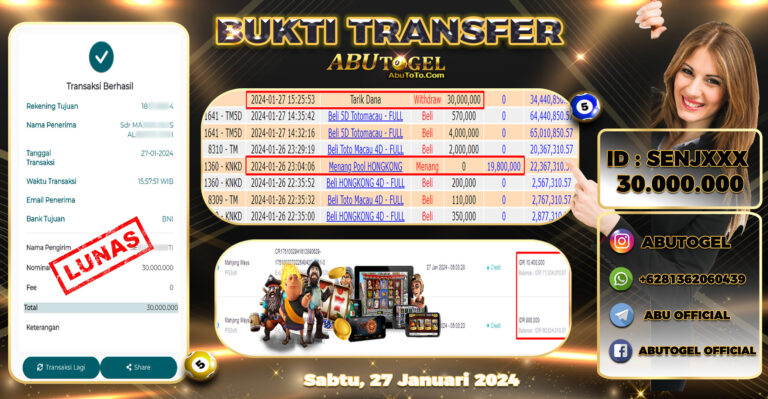 Bukti Jackpot ABUTOGEL Slot Online Sabtu 27 Januari 2024 - ABUTOGEL adalah situs slot gacor maxwin terpercaya. Berikut ini kami berikan...