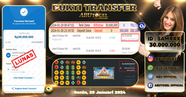 Bukti Jackpot ABUTOGEL Slot Online Selasa 30 Januari 2024 - ABUTOGEL adalah situs slot gacor maxwin terpercaya. Berikut ini kami berikan...
