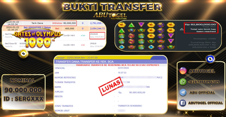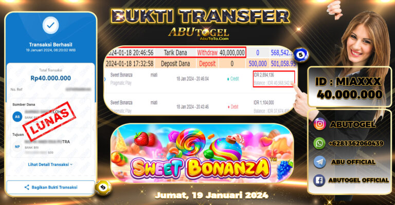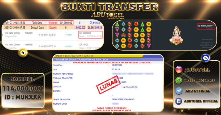 Bukti Jackpot ABUTOGEL Slot Online Jumat 19 Januari 2024 - ABUTOGEL adalah situs slot gacor maxwin terpercaya. Berikut ini kami berikan...