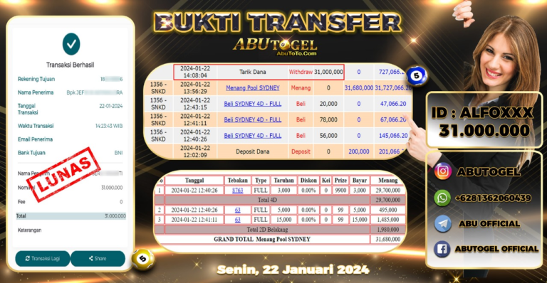 Bukti Jackpot Togel Online ABUTOGEL Sernin 22 Januari 2024 - ABUTOGEL adalah bo togel onlinne terpercaya. Berikut ini kami berikan info...