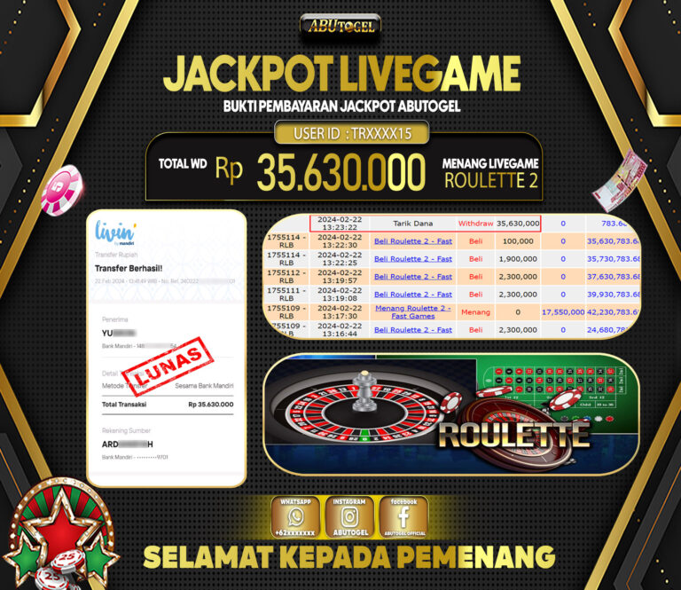 Bukti Jackpot ABUTOGEL Live Casino Sabtu 24 Februari 2024 - ABUTOGEL adalah situs live casino terpercaya. Berikut ini kami berikan...
