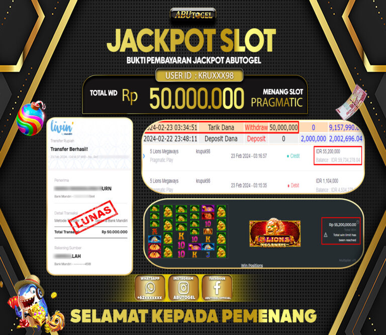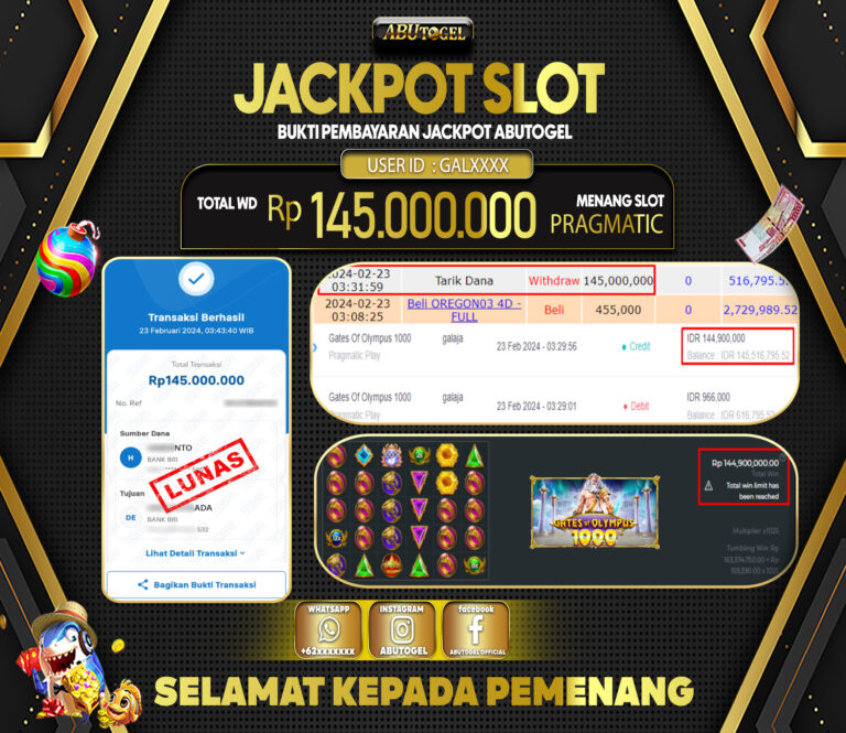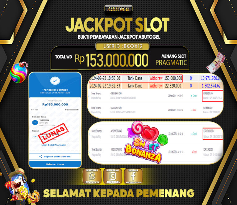 Bukti Jackpot ABUTOGEL Slot Online Jumat 23 Februari 2024 - ABUTOGEL adalah situs slot gacor maxwin terpercaya. Berikut ini kami berikan...