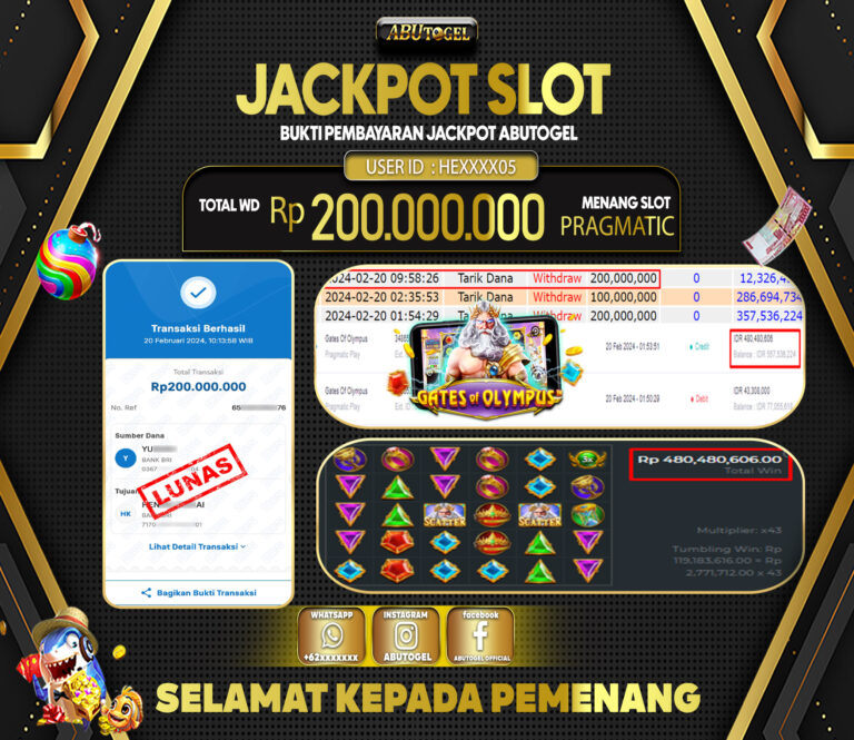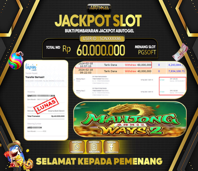 Bukti Jackpot ABUTOGEL Slot Online Selasa 20 Februari 2024 - ABUTOGEL adalah situs slot gacor maxwin terpercaya. Berikut ini kami berikan...
