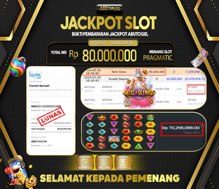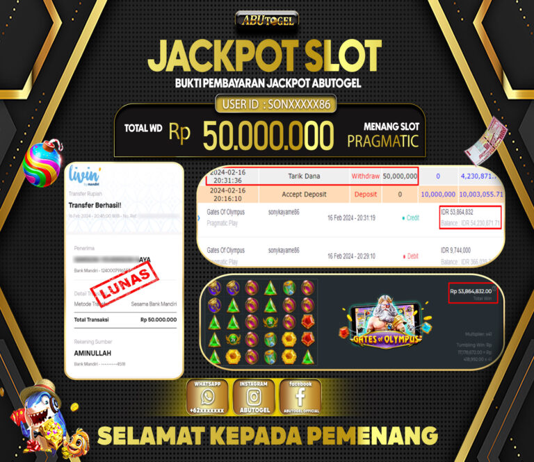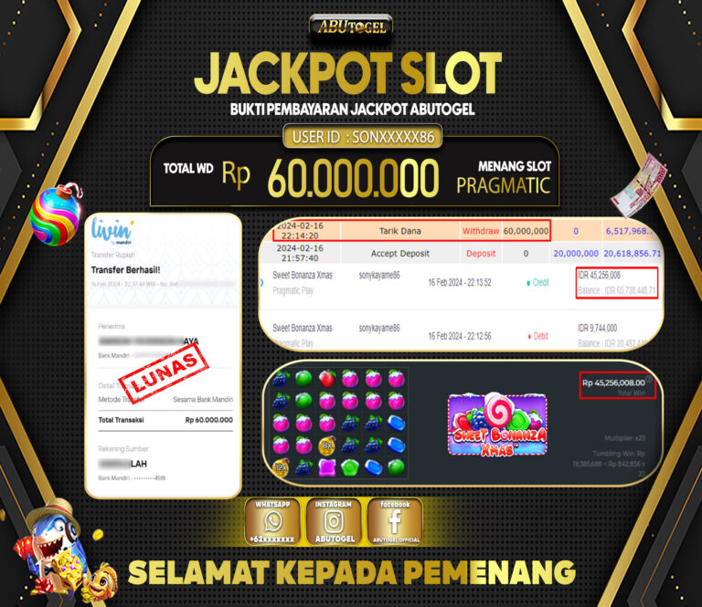 Bukti Jackpot ABUTOGEL Slot Online Jumat 16 Februari 2024 - ABUTOGEL adalah situs slot gacor maxwin terpercaya. Berikut ini kami berikan...