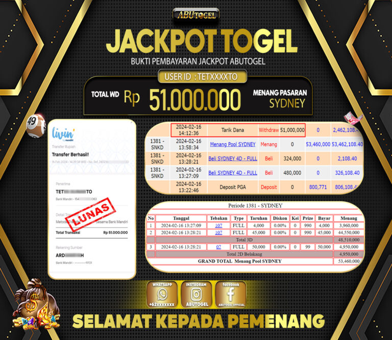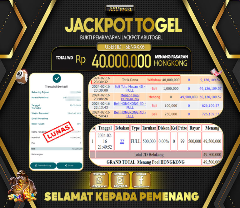 Bukti Jackpot Togel Online ABUTOGEL Jumat 16 Februari 2024 - ABUTOGEL adalah bo togel onlinne terpercaya. Berikut ini kami berikan info...