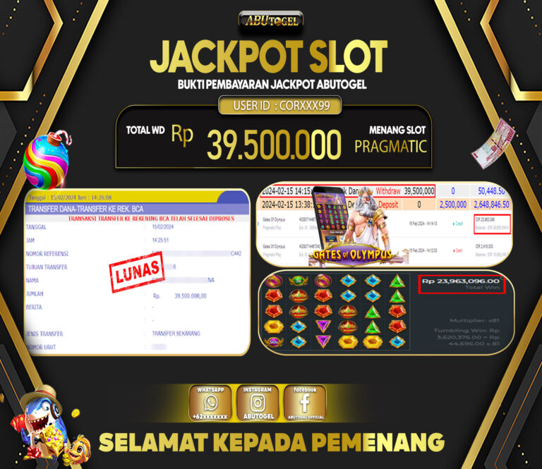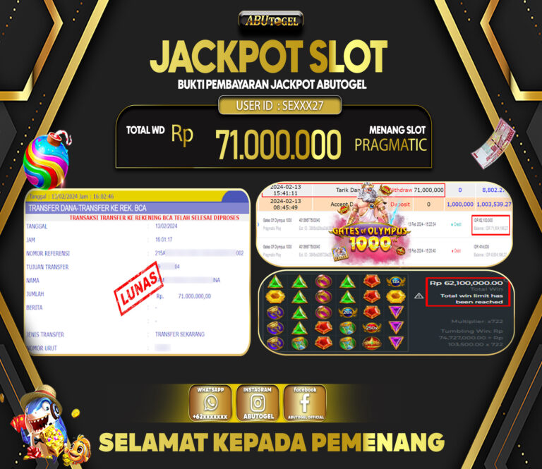 Bukti Jackpot ABUTOGEL Slot Online Selasa 13 Februari 2024 - ABUTOGEL adalah situs slot gacor maxwin terpercaya. Berikut ini kami berikan...