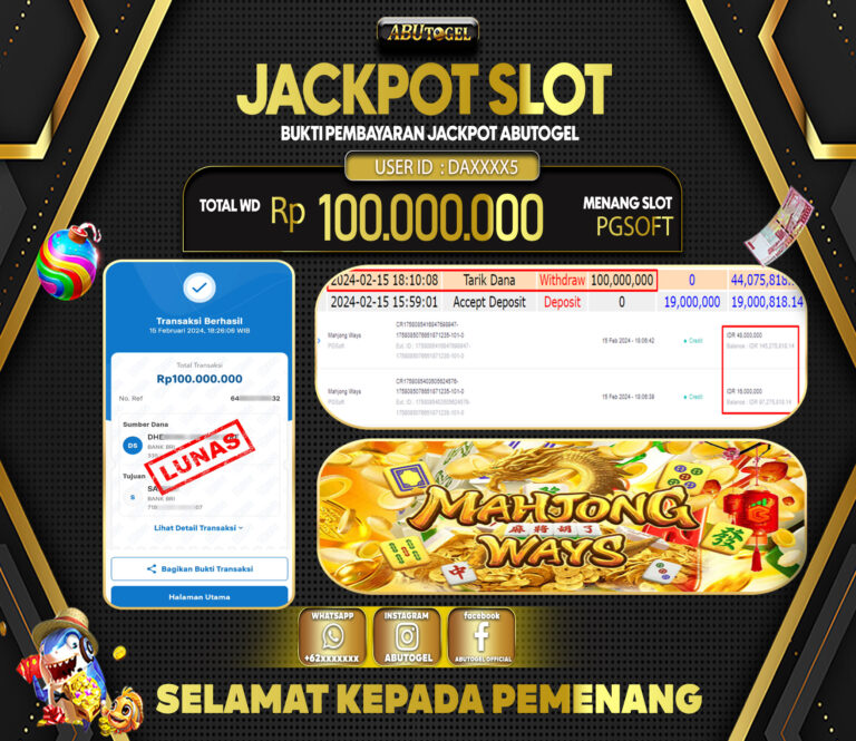 Bukti Jackpot ABUTOGEL Slot Online Kamis 15 Februari 2024 - ABUTOGEL adalah situs slot gacor maxwin terpercaya. Berikut ini kami berikan...