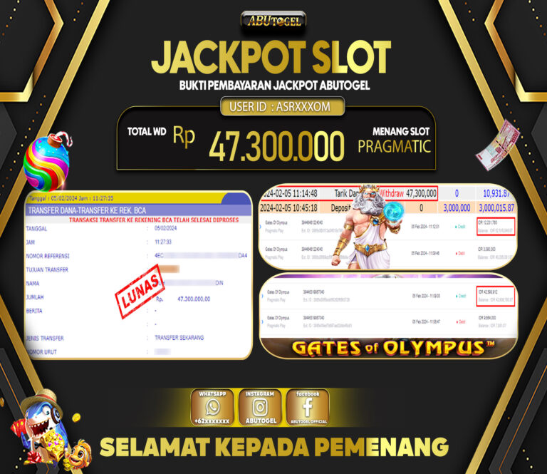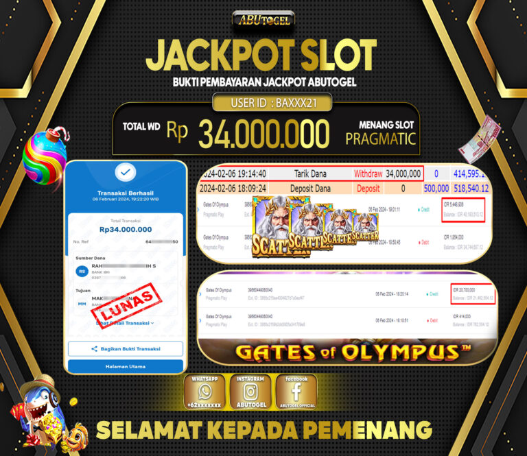 Bukti Jackpot ABUTOGEL Slot Online Selasa 06 Februari 2024 - ABUTOGEL adalah situs slot gacor maxwin terpercaya. Berikut ini kami berikan...