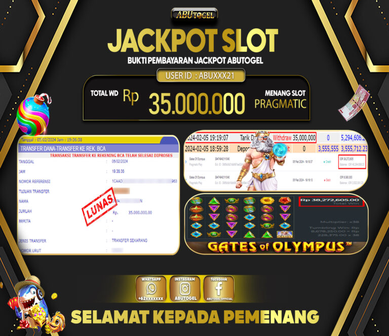Bukti Jackpot ABUTOGEL Slot Online Senin 05 Februari 2024 - ABUTOGEL adalah situs slot gacor maxwin terpercaya. Berikut ini kami berikan...