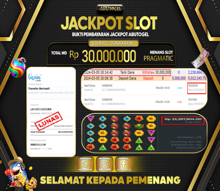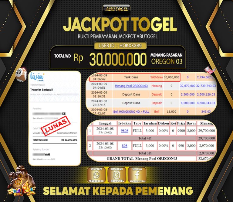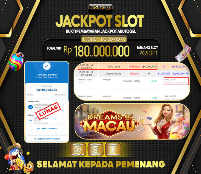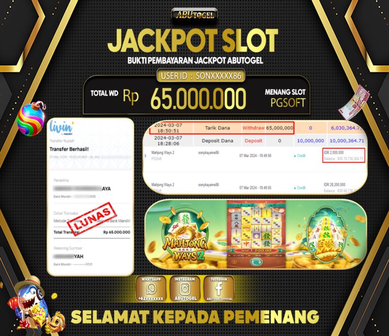 Bukti Jackpot ABUTOGEL Slot Online Selasa 12 Maret 2024 - ABUTOGEL adalah situs slot gacor maxwin terpercaya. Berikut ini kami berikan...