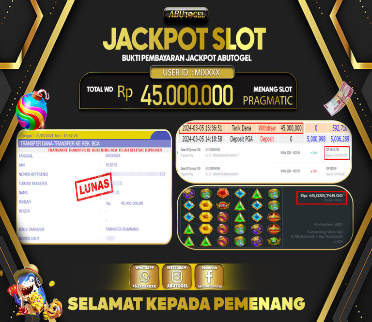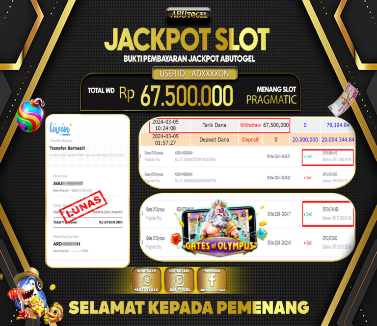 Bukti Jackpot ABUTOGEL Slot Online Selasa 05 Maret 2024 - ABUTOGEL adalah situs slot gacor maxwin terpercaya. Berikut ini kami berikan...