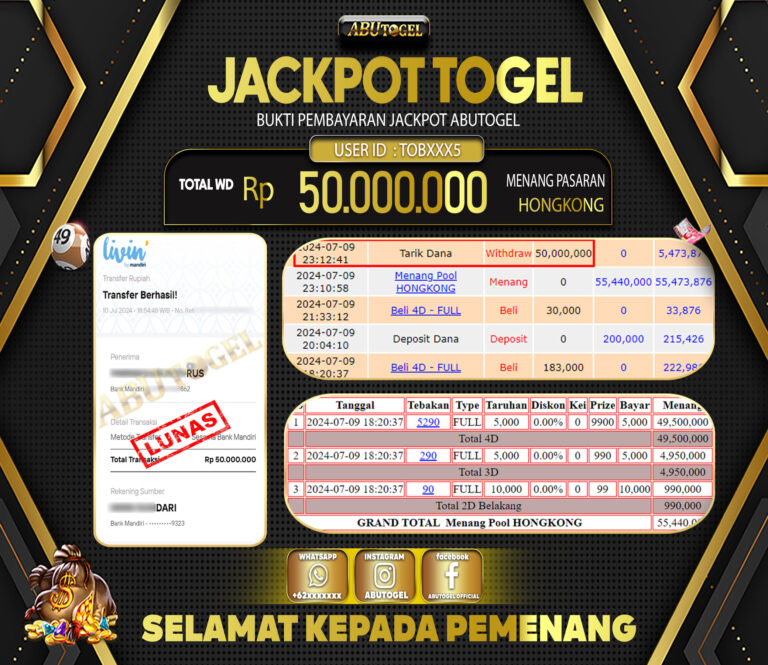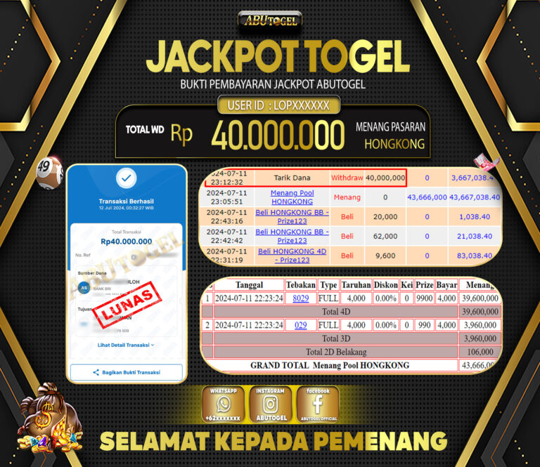 Bukti Jackpot Togel Online ABUTOGEL Kamis 11 Juli 2024 - ABUTOGEL adalah bo togel onlinne terpercaya. Berikut ini kami berikan info...
