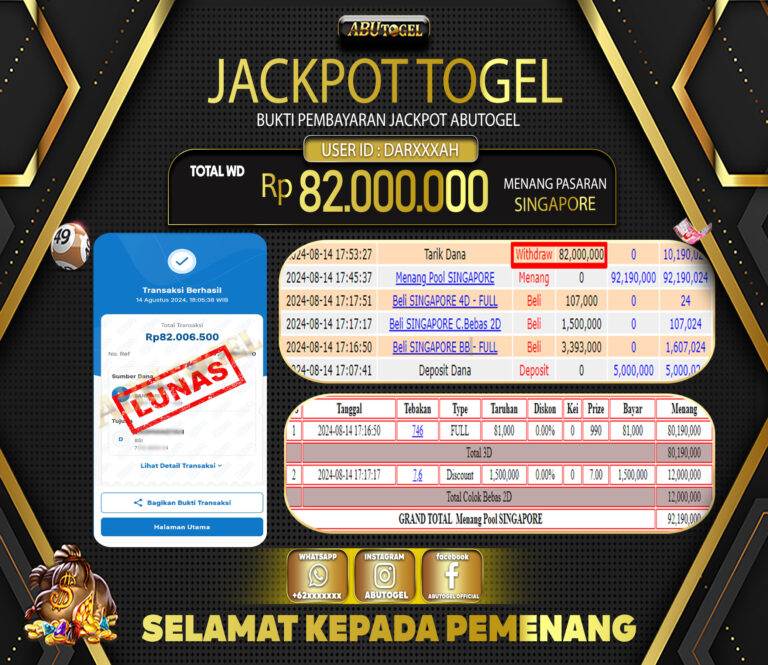 Bukti Jackpot Togel Online ABUTOGEL Rabu 14 Agustus 2024 - ABUTOGEL adalah bo togel onlinne terpercaya. Berikut ini kami berikan info...