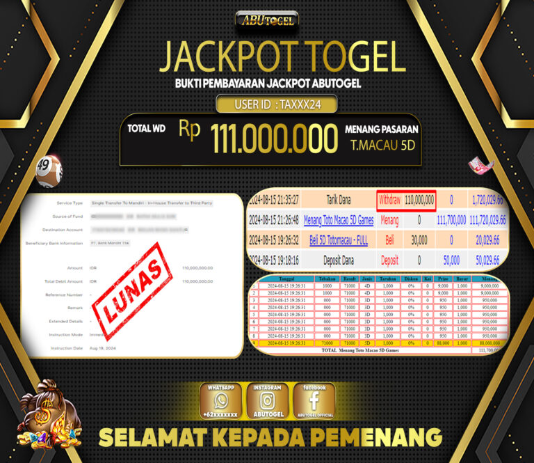 Bukti Jackpot ABUTOGEL Slot Online Jumat 16 Agustus 2024 - ABUTOGEL adalah situs slot gacor maxwin terpercaya. Berikut ini kami berikan...