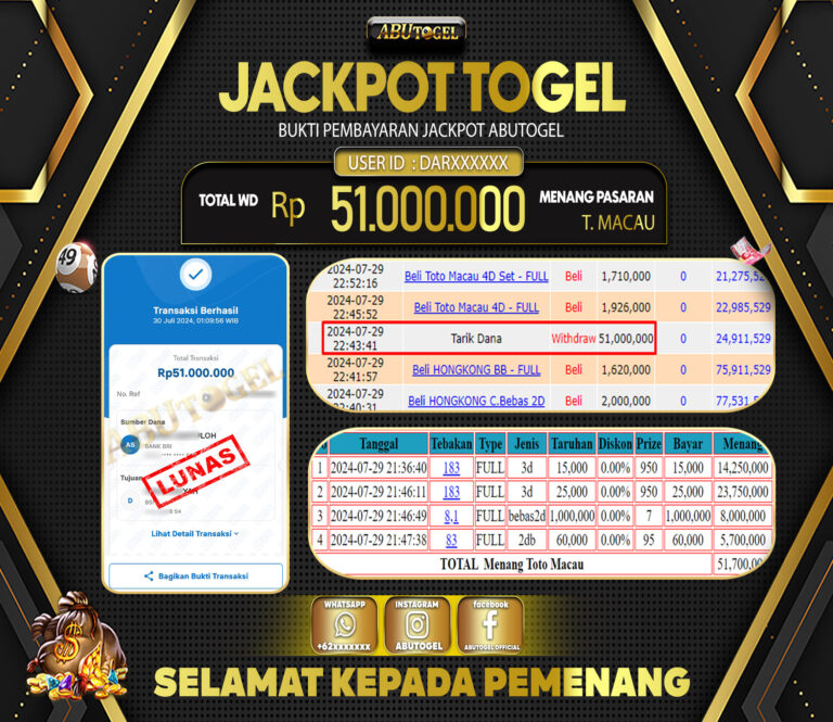 Bukti Jackpot Togel Online ABUTOGEL Rabu 31 Juli 2024 - ABUTOGEL adalah bo togel onlinne terpercaya. Berikut ini kami berikan info...