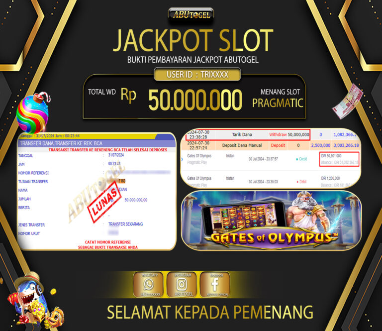Bukti Jackpot ABUTOGEL Slot Online Rabu 31 Juli 2024 - ABUTOGEL adalah situs slot gacor maxwin terpercaya. Berikut ini kami berikan...