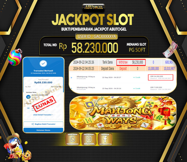 Bukti Jackpot ABUTOGEL Slot Online Minggu 22 September 2024 - ABUTOGEL adalah situs slot gacor maxwin terpercaya. Berikut ini kami berikan...