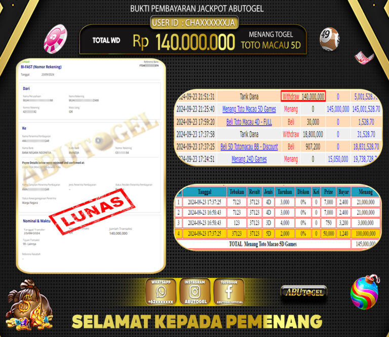 Bukti Jackpot ABUTOGEL Slot Online Sabtu 28 September 2024 - ABUTOGEL adalah situs slot gacor maxwin terpercaya. Berikut ini kami berikan...