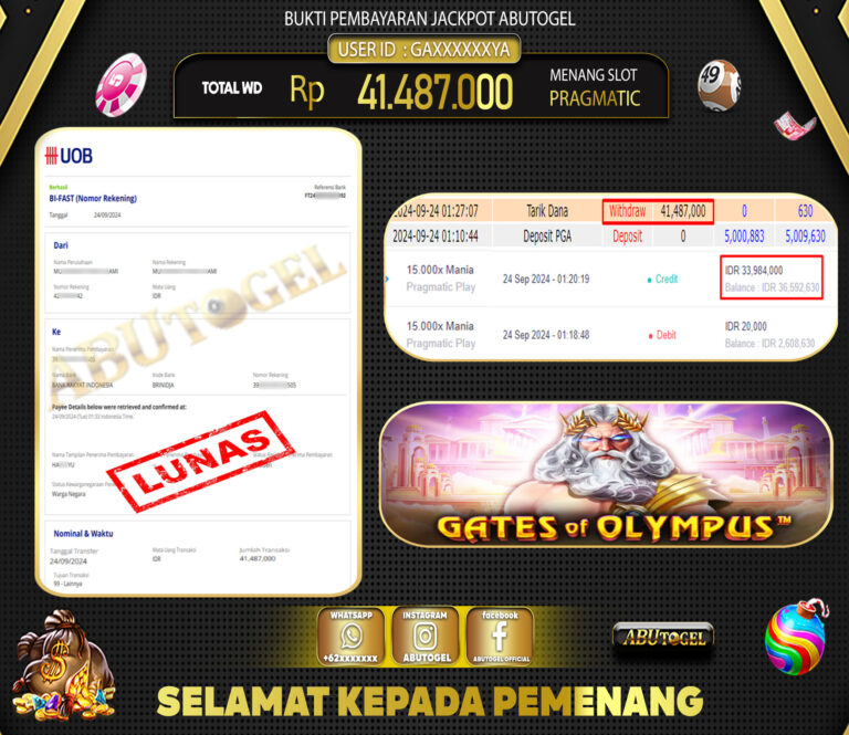 Bukti Jackpot ABUTOGEL Slot Online Selasa 17 September 2024 - ABUTOGEL adalah situs slot gacor maxwin terpercaya. Berikut ini kami berikan...