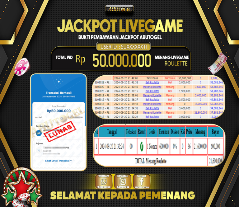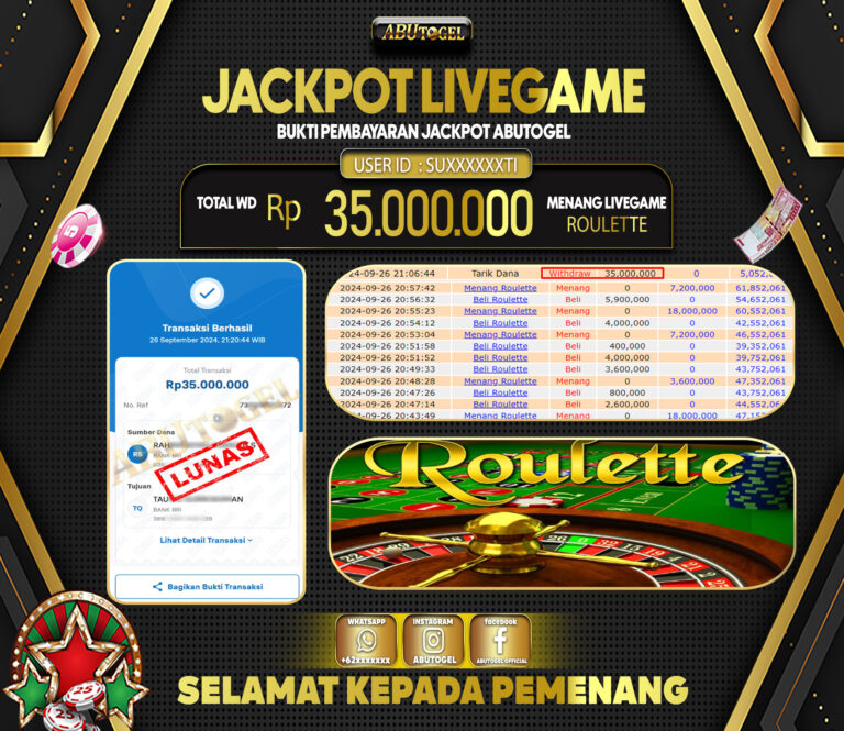 Bukti Jackpot ABUTOGEL Live Casino Sabtu 21 September 2024 - ABUTOGEL adalah situs live casino terpercaya. Berikut ini kami berikan info...