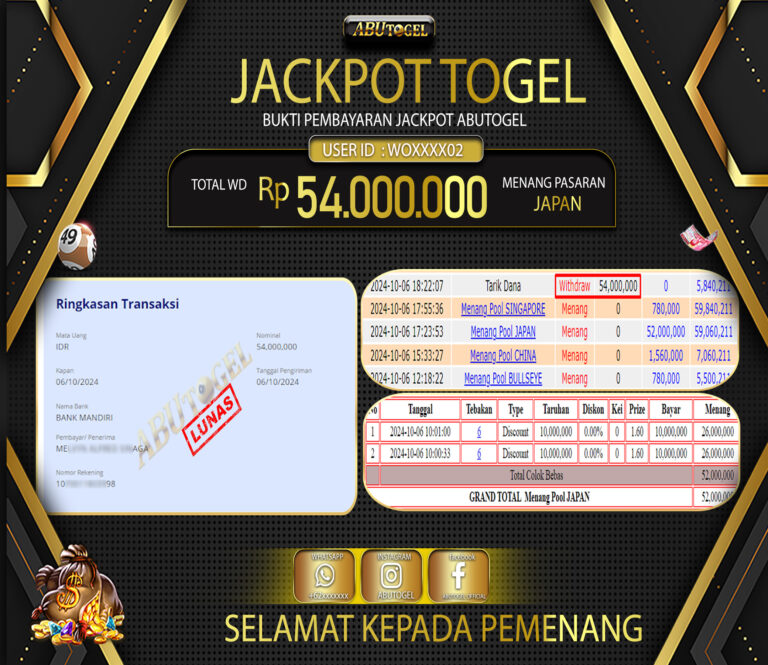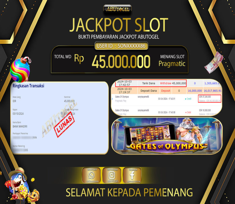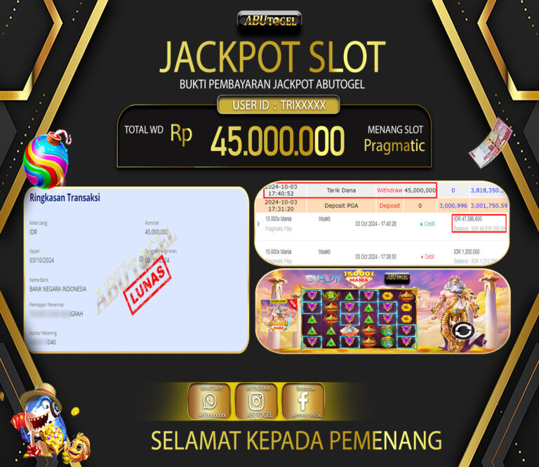 Bukti Jackpot ABUTOGEL Slot Online kamis 03 Oktober 2024 - ABUTOGEL adalah situs slot gacor maxwin terpercaya. Berikut ini kami berikan...