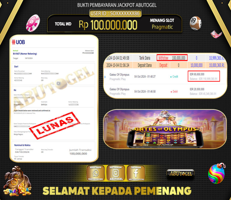 Bukti Jackpot ABUTOGEL Slot Online Jumat 04 Oktober 2024 - ABUTOGEL adalah situs slot gacor maxwin terpercaya. Berikut ini kami berikan...