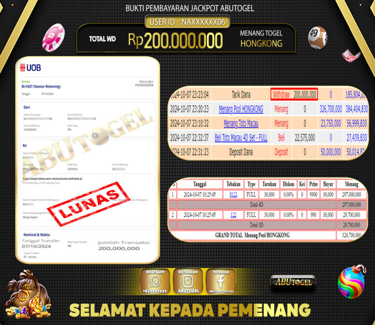 Bukti Jackpot ABUTOGEL Slot Online Senin 07 Oktober 2024 - ABUTOGEL adalah situs slot gacor maxwin terpercaya. Berikut ini kami berikan...
