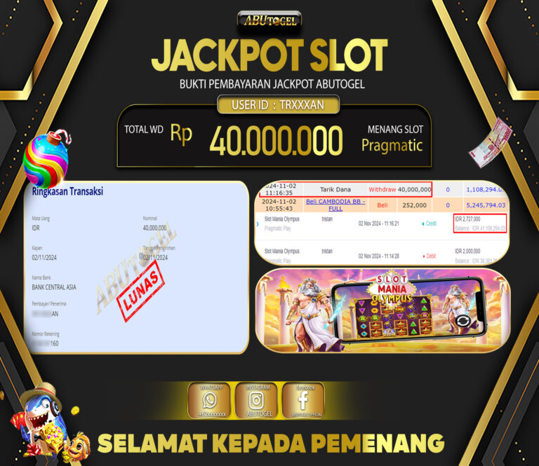 Bukti Jackpot ABUTOGEL Slot Online Jumat 25 Oktober 2024 - ABUTOGEL adalah situs slot gacor maxwin terpercaya. Berikut ini kami berikan...