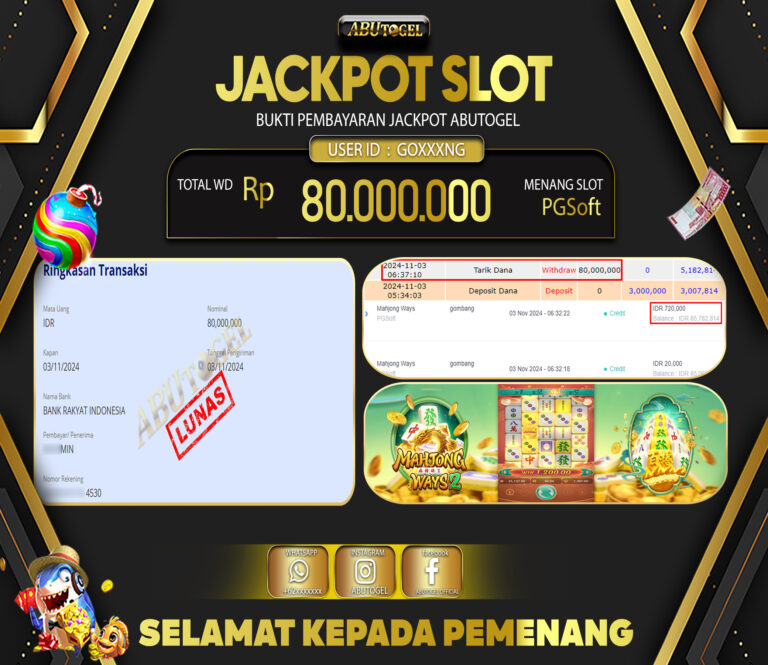 Bukti Jackpot ABUTOGEL Slot Online Minggu 03 November 2024 - ABUTOGEL adalah situs slot gacor maxwin terpercaya. Berikut ini kami berikan...