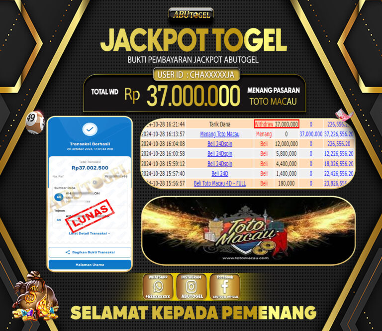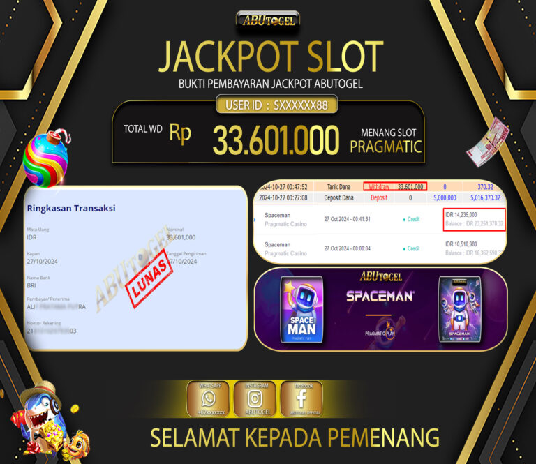 Bukti Jackpot ABUTOGEL Slot Online Minggu 27 Oktober 2024 - ABUTOGEL adalah situs slot gacor maxwin terpercaya. Berikut ini kami berikan...