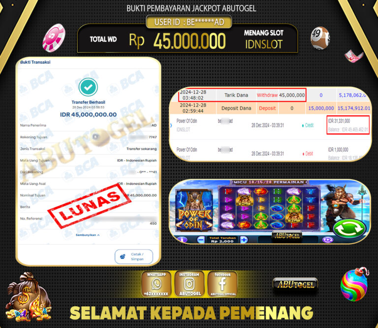 Bukti Jackpot ABUTOGEL Slot Online Jumat 27 Desember 2024 - ABUTOGEL adalah situs slot gacor maxwin terpercaya. Berikut ini kami berikan...