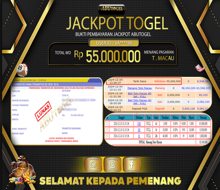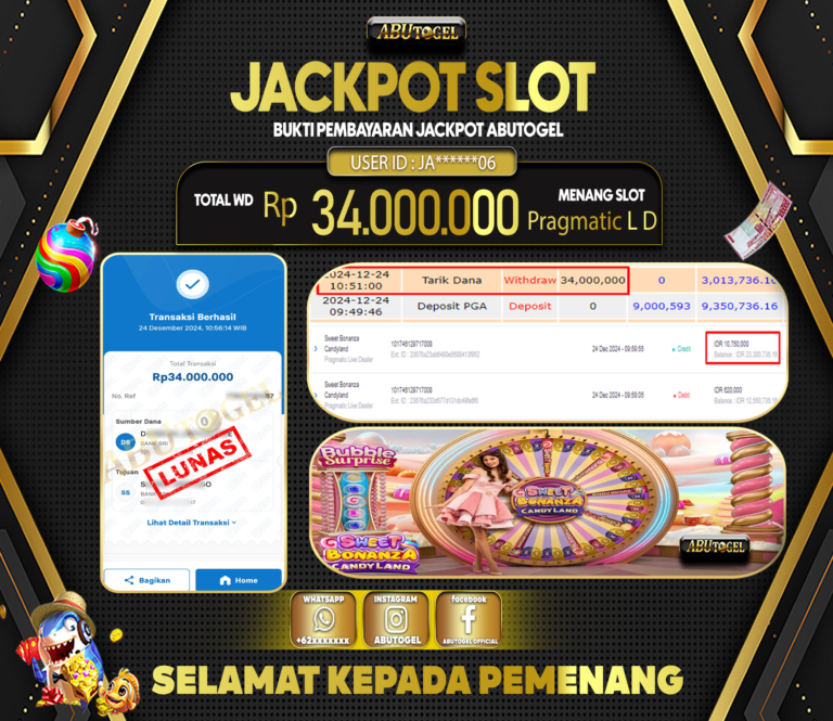 Bukti Jackpot ABUTOGEL Live Casino Rabu 25 Desember 2024 - ABUTOGEL adalah situs live casino terpercaya. Berikut ini kami berikan info...