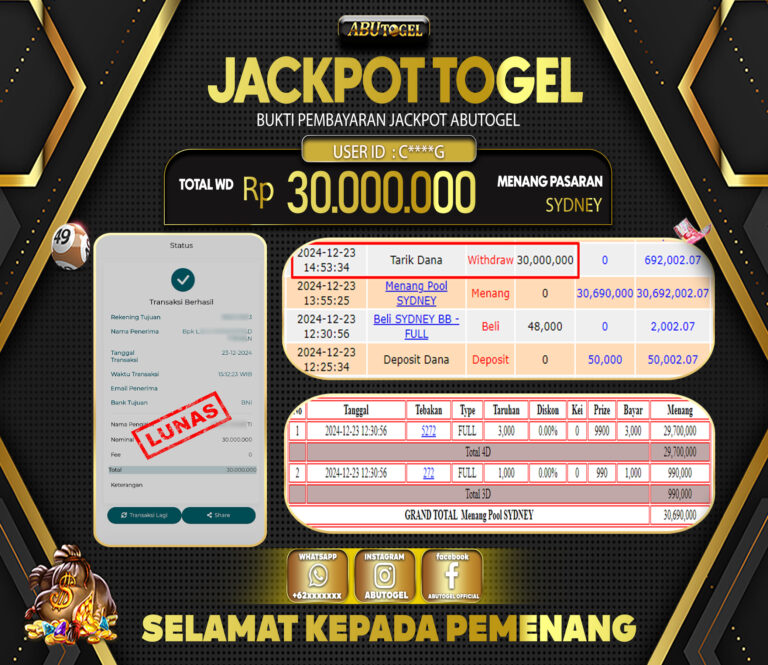 Bukti Jackpot Togel Online ABUTOGEL Senin 23 Desember 2024 - ABUTOGEL adalah bo togel onlinne terpercaya. Berikut ini kami berikan info...