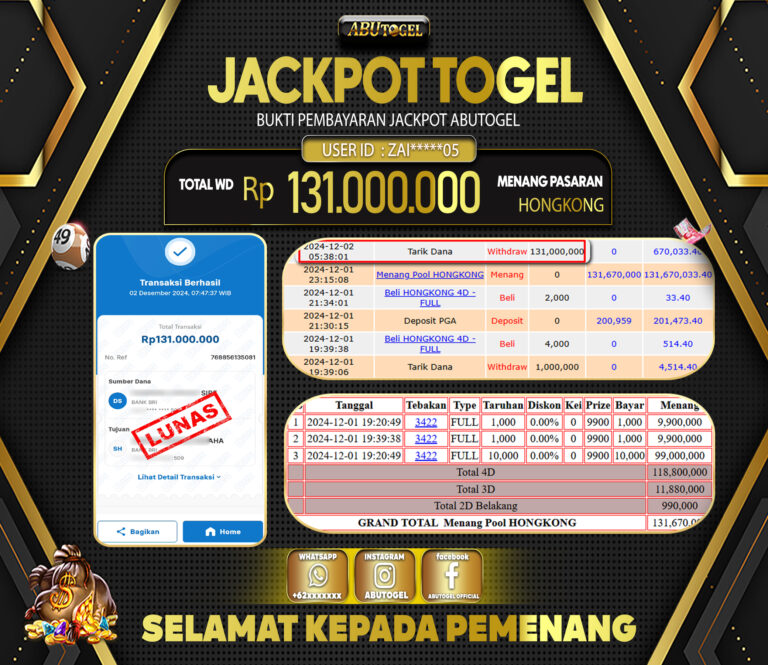 Bukti Jackpot Togel Online ABUTOGEL Minggu 01 Desember 2024 - ABUTOGEL adalah bo togel onlinne terpercaya. Berikut ini kami berikan info...