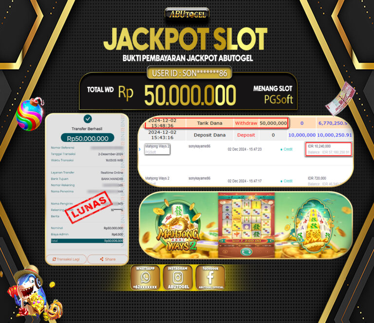 Bukti Jackpot ABUTOGEL Slot Online Minggu 01 Desember 2024 - ABUTOGEL adalah situs slot gacor maxwin terpercaya. Berikut ini kami berikan...