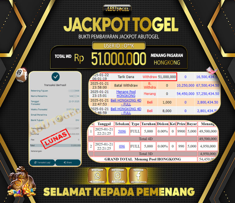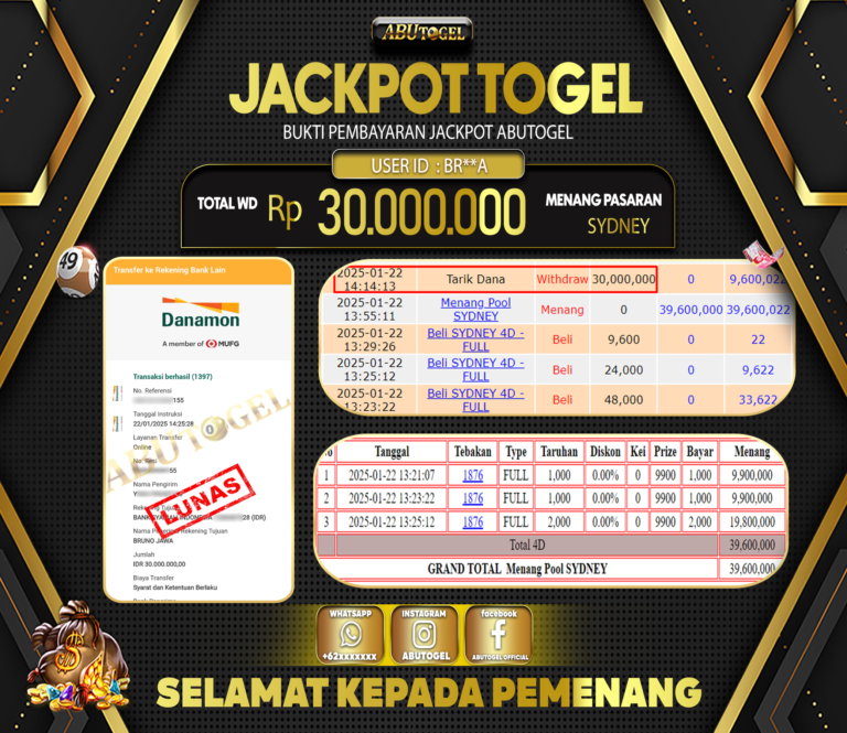 Bukti Jackpot Togel Online ABUTOGEL Rabu 22 Januari 2025 - ABUTOGEL adalah bo togel onlinne terpercaya. Berikut ini kami berikan info...