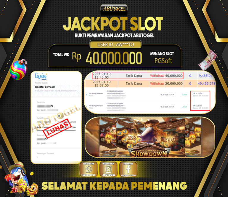 Bukti Jackpot ABUTOGEL Slot Online Minggu 19 Januari 2025 - ABUTOGEL adalah situs slot gacor maxwin terpercaya. Berikut ini kami berikan...